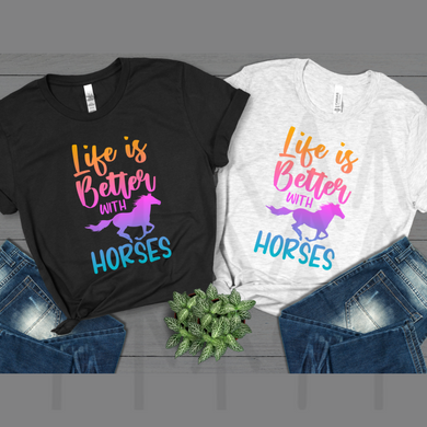 Life Is Better With Horses - Orange Pink Purple Blue (Adult - Infant)